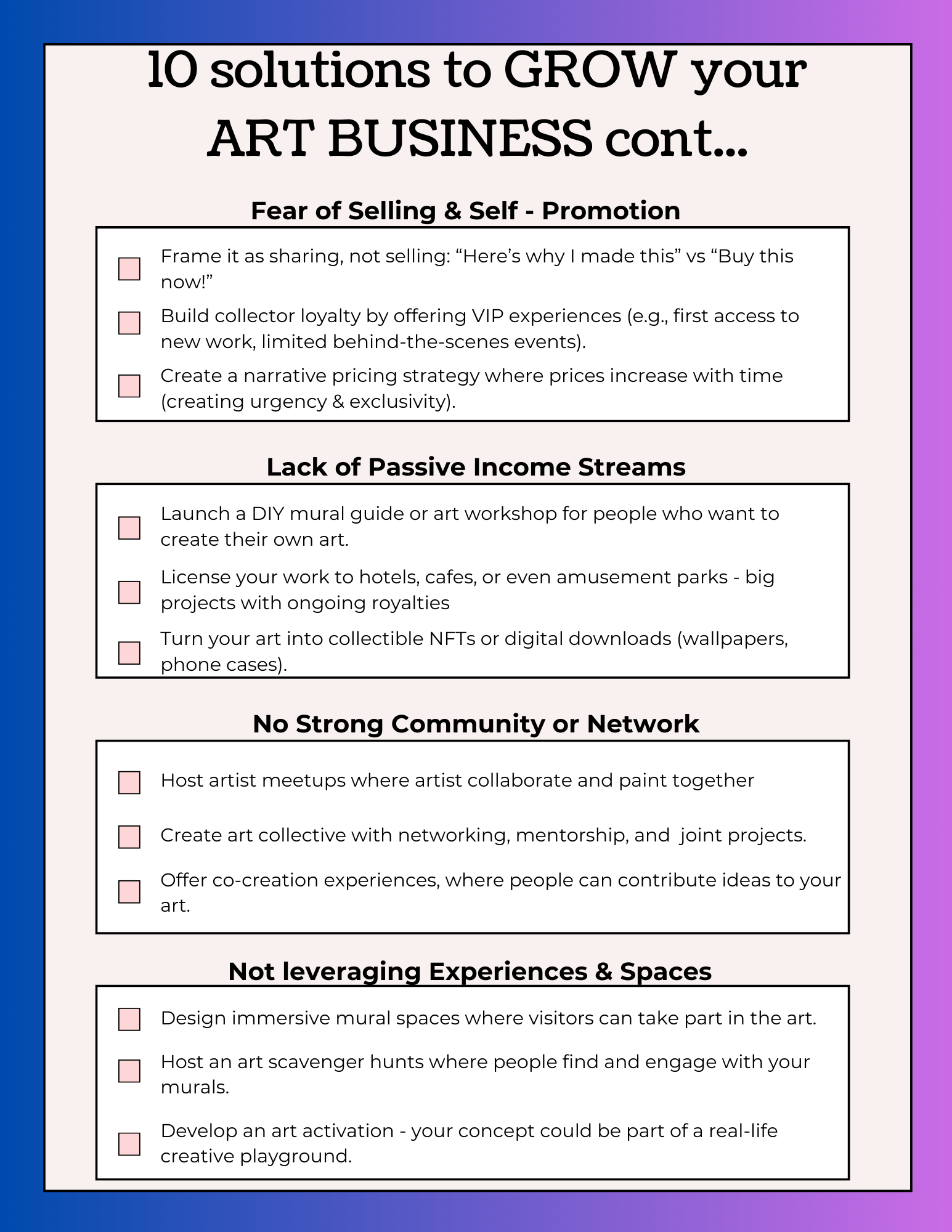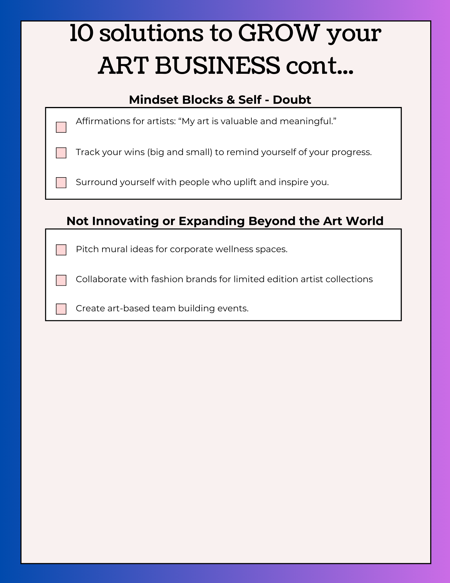 10 Solutions to grow your art business.